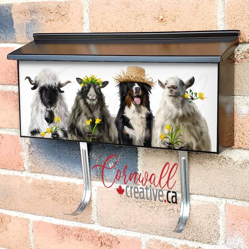 Applying your Shepherd Dog and Three Sheep wall-mounted townhouse / ranch mailbox cover it is pretty easy to spruce up your mailbox to a special and unique item. These covers require a flat surface, so they work with townhouse / ranch mailboxes that do not have any embossed / debossed decoration or signs. Magnetic mailbox covers work with steel boxes only, for aluminum and plastic boxes we offer the self-adhesive vinyl covers. Also, you can create your custom townhouse / ranch mailbox cover using you own pictures, adding your name, street number, etc. Our magnetic covers feature a complete magnetic surface throughout the entire design, unlike lower-quality options that only incorporate two magnet strips combined with a piece of canvas. This ensures better functionality and a more reliable, stronger hold against the wind, also these covers have an additional UV protection, so your covers will not fade for many years. The reflective mailbox covers function just like license plates and road signs, ensuring excellent visibility during nighttime.