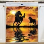 Transform your kitchen effortlessly with this stunning Silhouette of Sunset Horses Magnetic Dishwasher Door Cover! Keep in mind that while this cover works with most dishwashers, some stainless steel and plastic doors might not hold magnets. There are two types of stainless steel: one that attracts magnets well and another that does not, and plastic doors will definitely not work with magnets. So, it is a good idea to test the surface with a magnet before making a purchase. If your dishwasher door is not compatible, consider opting for the Removable Dishwasher Door Sticker instead. Your decorated kitchen will be ready for the season in no time! Keep in mind that this magnetic cover is versatile and can be used on a variety of appliances, including fridges, freezers, washers, dryers, and more!