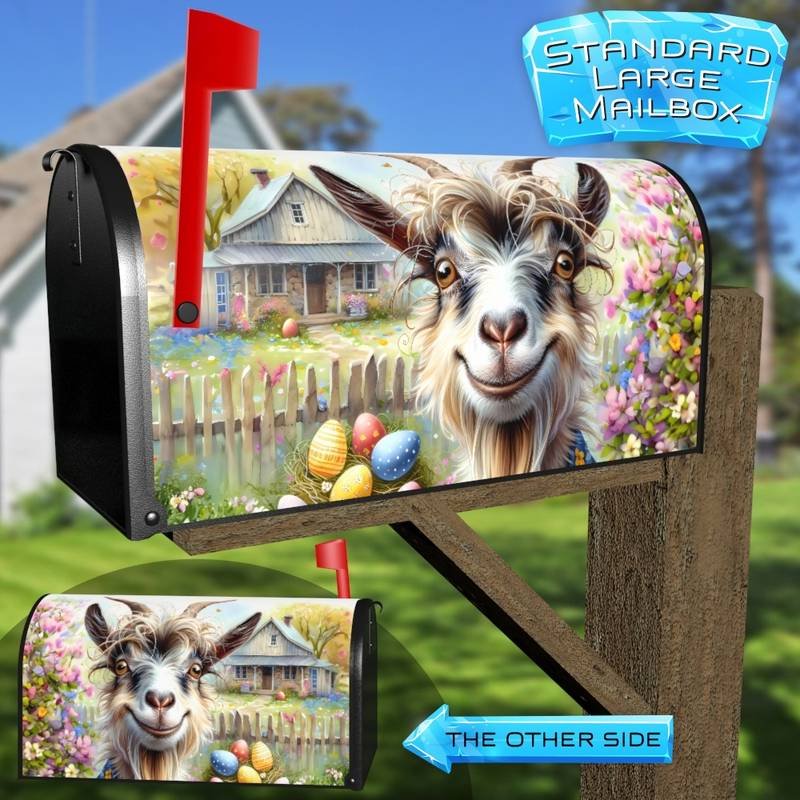 Prettify your Mailbox and your neighborhood with this brilliant Smiling Easter Goose curbside / rural / farm magnetic or self adhesive vinyl Mailbox Cover. Our magnetic covers feature a complete magnetic surface throughout the entire design, unlike lower-quality options that only incorporate two magnet strips combined with a piece of canvas. This ensures better functionality and a more reliable, stronger hold against the wind, also these covers have an additional UV protection, so your covers will not fade for many years. We offer self-adhesive and magnetic covers with both standard opaque vinyl or reflective vinyl options. The reflective mailbox covers function just like license plates and road signs, ensuring excellent visibility during nighttime. No matter the size of your mailbox, we make covers for all small, large and jumbo boxes to suit your needs perfectly!