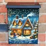 Dress-up your Mailbox and your neighborhood with this brilliant Snowman at the Snowy Cottage Colonial magnetic or self adhesive vinyl Mailbox Cover. Our magnetic covers feature a complete magnetic surface throughout the entire design, unlike lower-quality options that only incorporate two magnet strips combined with a piece of canvas. This ensures better functionality and a more reliable, stronger hold against the wind, also these covers have an additional UV protection, so your covers will not fade for many years. We offer self-adhesive and magnetic covers with both standard opaque vinyl or reflective vinyl options. The reflective mailbox covers function just like license plates and road signs, ensuring excellent visibility during nighttime. No matter the size of your mailbox, we make covers for all box sizes to suit your needs perfectly!