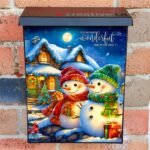 Prettify your Mailbox and your neighborhood with this brilliant Snowman Couple at the Cottage Colonial magnetic or self adhesive vinyl Mailbox Cover. Our magnetic covers feature a complete magnetic surface throughout the entire design, unlike lower-quality options that only incorporate two magnet strips combined with a piece of canvas. This ensures better functionality and a more reliable, stronger hold against the wind, also these covers have an additional UV protection, so your covers will not fade for many years. We offer self-adhesive and magnetic covers with both standard opaque vinyl or reflective vinyl options. The reflective mailbox covers function just like license plates and road signs, ensuring excellent visibility during nighttime. No matter the size of your mailbox, we make covers for all box sizes to suit your needs perfectly!