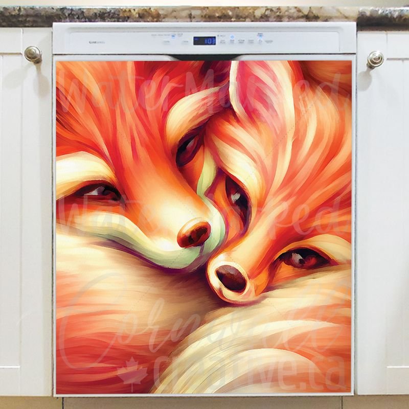 Spruce up your kitchen effortlessly with this stunning Snugly Fox Couple Magnetic Dishwasher Door Cover! Keep in mind that while this cover works with most dishwashers, some stainless steel and plastic doors might not hold magnets. There are two types of stainless steel: one that attracts magnets well and another that does not, and plastic doors will definitely not work with magnets. So, it is a good idea to test the surface with a magnet before making a purchase. If your dishwasher door is not compatible, consider opting for the Removable Dishwasher Door Sticker instead. Your revamped kitchen will be ready for the season in no time! Keep in mind that this magnetic cover is versatile and can be used on a variety of appliances, including fridges, freezers, washers, dryers, and more!