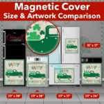 Adorn your kitchen effortlessly with this stunning St. Patrick Day Shamrock Truck Magnetic Dishwasher Door Cover! Keep in mind that while this cover works with most dishwashers, some stainless steel and plastic doors might not hold magnets. There are two types of stainless steel: one that attracts magnets well and another that does not, and plastic doors will definitely not work with magnets. So, it is a good idea to test the surface with a magnet before making a purchase. If your dishwasher door is not compatible, consider opting for the Removable Dishwasher Door Sticker instead. Your gussied up kitchen will be ready for the season in no time! Keep in mind that this magnetic cover is versatile and can be used on a variety of appliances, including fridges, freezers, washers, dryers, and more!