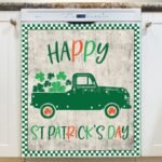 St. Patrick Day Shamrock Truck Magnetic Dishwasher Door Cover