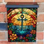 Revamp your Mailbox and your neighborhood with this brilliant Stained Glass Anchor Design Colonial magnetic or self adhesive vinyl Mailbox Cover. Our magnetic covers feature a complete magnetic surface throughout the entire design, unlike lower-quality options that only incorporate two magnet strips combined with a piece of canvas. This ensures better functionality and a more reliable, stronger hold against the wind, also these covers have an additional UV protection, so your covers will not fade for many years. We offer self-adhesive and magnetic covers with both standard opaque vinyl or reflective vinyl options. The reflective mailbox covers function just like license plates and road signs, ensuring excellent visibility during nighttime. No matter the size of your mailbox, we make covers for all box sizes to suit your needs perfectly!