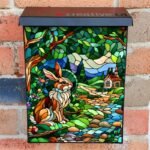 Embellish your Mailbox and your neighborhood with this brilliant Stained Glass Bunny at the Cottage Colonial magnetic or self adhesive vinyl Mailbox Cover. Our magnetic covers feature a complete magnetic surface throughout the entire design, unlike lower-quality options that only incorporate two magnet strips combined with a piece of canvas. This ensures better functionality and a more reliable, stronger hold against the wind, also these covers have an additional UV protection, so your covers will not fade for many years. We offer self-adhesive and magnetic covers with both standard opaque vinyl or reflective vinyl options. The reflective mailbox covers function just like license plates and road signs, ensuring excellent visibility during nighttime. No matter the size of your mailbox, we make covers for all box sizes to suit your needs perfectly!