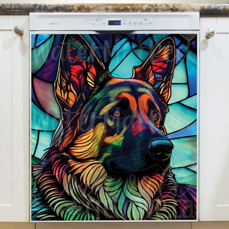 Spruce up your kitchen effortlessly with this stunning Stained Glass German Shepherd Design 2 Magnetic Dishwasher Door Cover! Keep in mind that while this cover works with most dishwashers, some stainless steel and plastic doors might not hold magnets. There are two types of stainless steel: one that attracts magnets well and another that does not, and plastic doors will definitely not work with magnets. So, it is a good idea to test the surface with a magnet before making a purchase. If your dishwasher door is not compatible, consider opting for the Removable Dishwasher Door Sticker instead. Your decorated kitchen will be ready for the season in no time! Keep in mind that this magnetic cover is versatile and can be used on a variety of appliances, including fridges, freezers, washers, dryers, and more!
