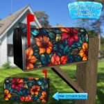 Spruce up your Mailbox and your neighborhood with this brilliant Stained Glass Hibiscus Flowers curbside / rural / farm magnetic or self adhesive vinyl Mailbox Cover. Our magnetic covers feature a complete magnetic surface throughout the entire design, unlike lower-quality options that only incorporate two magnet strips combined with a piece of canvas. This ensures better functionality and a more reliable, stronger hold against the wind, also these covers have an additional UV protection, so your covers will not fade for many years. We offer self-adhesive and magnetic covers with both standard opaque vinyl or reflective vinyl options. The reflective mailbox covers function just like license plates and road signs, ensuring excellent visibility during nighttime. No matter the size of your mailbox, we make covers for all small, large and jumbo boxes to suit your needs perfectly!