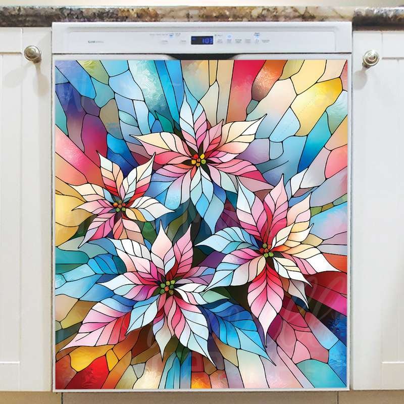 Reform your kitchen effortlessly with this stunning Stained Glass Pastel Christmas Poinsettias Magnetic Dishwasher Door Cover! Keep in mind that while this cover works with most dishwashers, some stainless steel and plastic doors might not hold magnets. There are two types of stainless steel: one that attracts magnets well and another that does not, and plastic doors will definitely not work with magnets. So, it is a good idea to test the surface with a magnet before making a purchase. If your dishwasher door is not compatible, consider opting for the Removable Dishwasher Door Sticker instead. Your dressed-up kitchen will be ready for the season in no time! Keep in mind that this magnetic cover is versatile and can be used on a variety of appliances, including fridges, freezers, washers, dryers, and more!