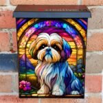 Stained Glass Shih Tzu and Flowers Colonial Mailbox Cover