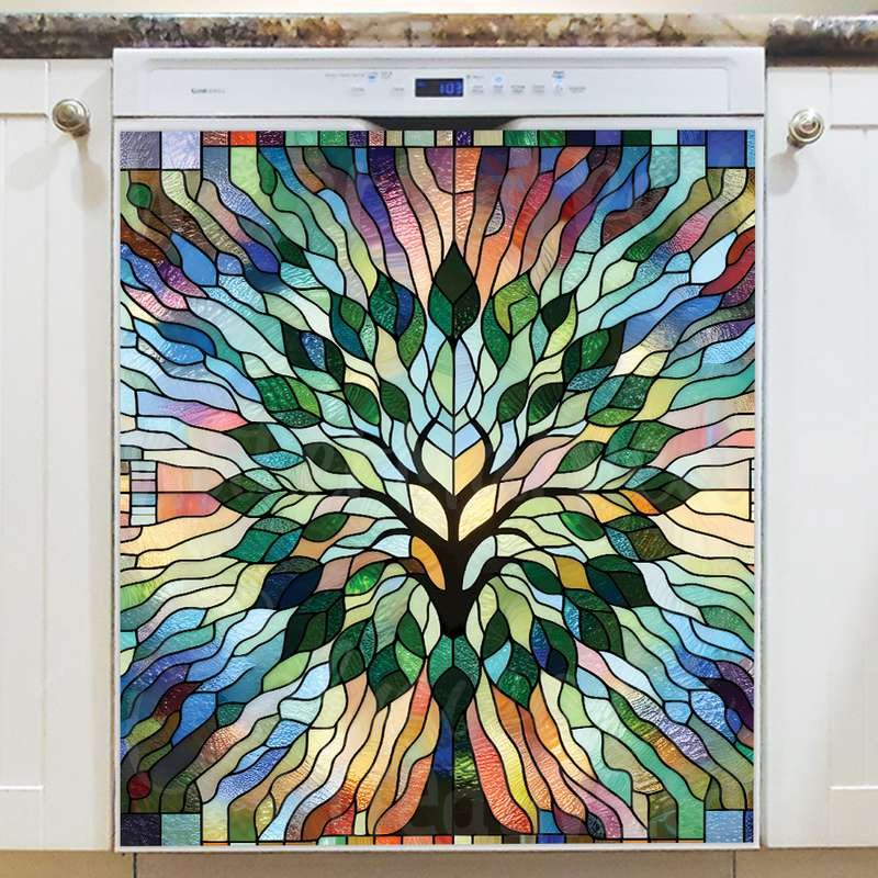 Stained Glass Tree in the Sunrise Magnetic Dishwasher Door Cover