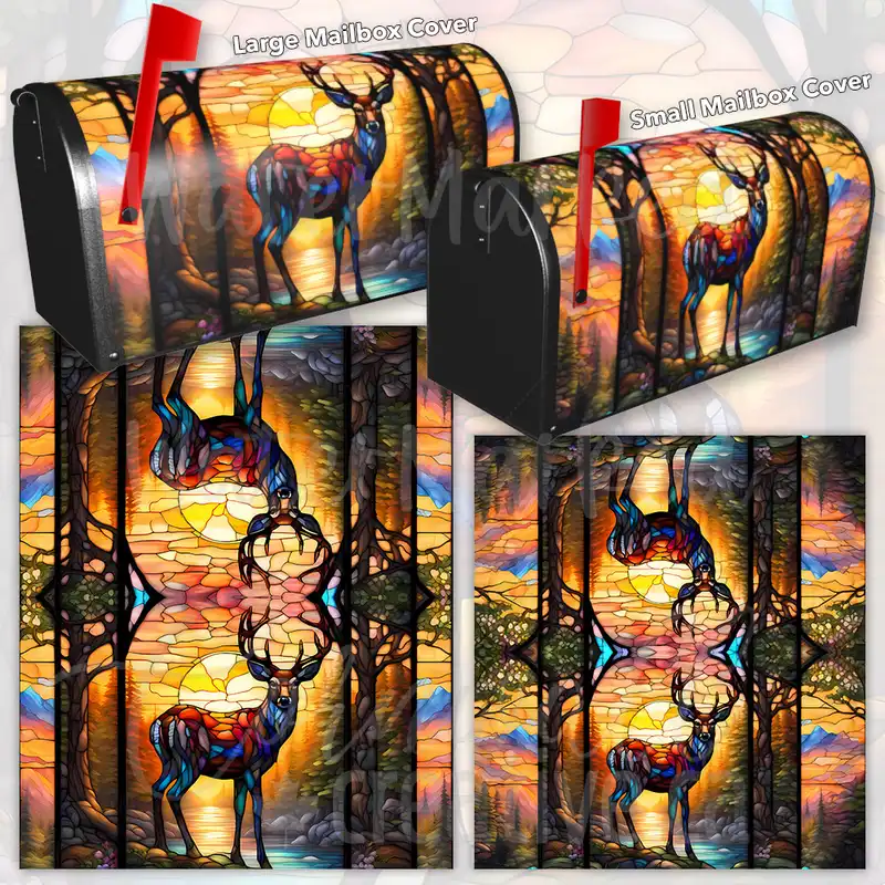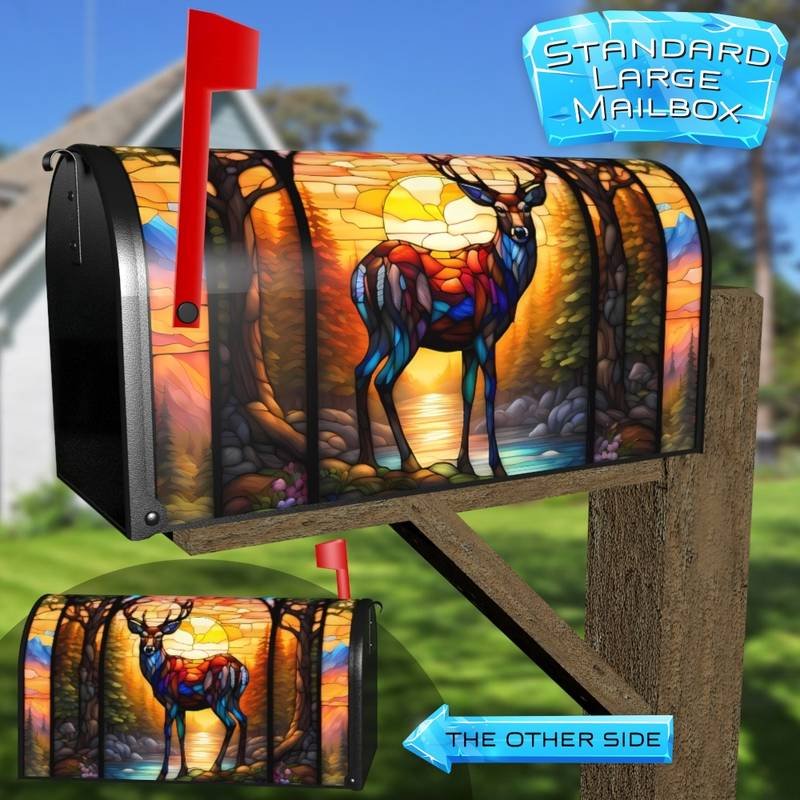 Stained Glass Woodland Deer Rural Farm Mailbox Cover