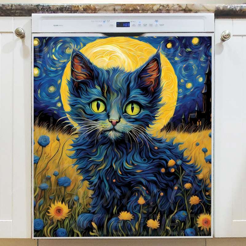 Starry Night Kitten Magnetic Dishwasher Door Cover