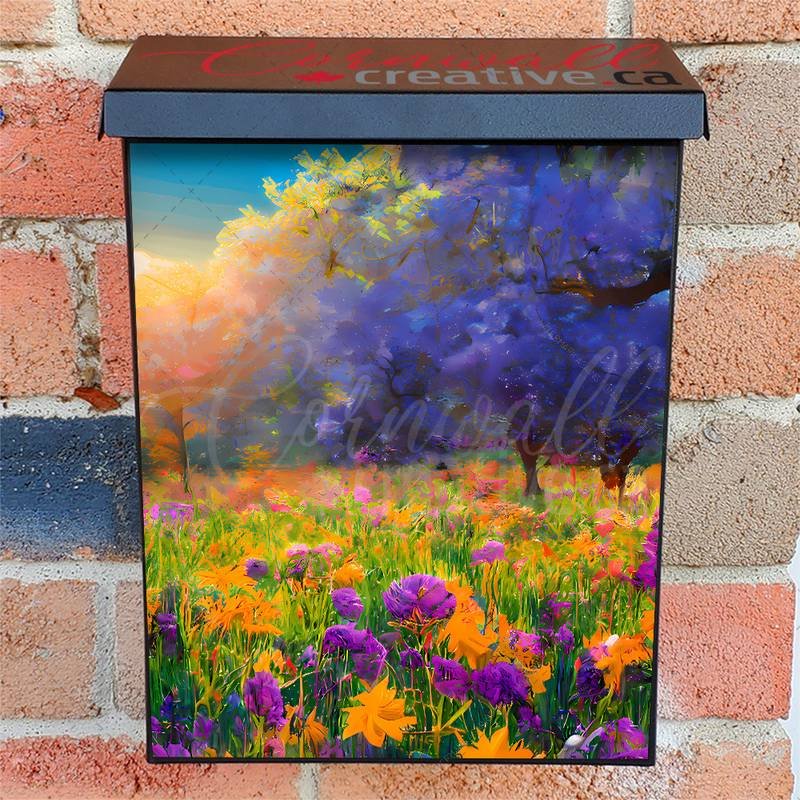 Gussy up your Mailbox and your neighborhood with this brilliant Summer Morning in the Meadow Colonial magnetic or self adhesive vinyl Mailbox Cover. Our magnetic covers feature a complete magnetic surface throughout the entire design, unlike lower-quality options that only incorporate two magnet strips combined with a piece of canvas. This ensures better functionality and a more reliable, stronger hold against the wind, also these covers have an additional UV protection, so your covers will not fade for many years. We offer self-adhesive and magnetic covers with both standard opaque vinyl or reflective vinyl options. The reflective mailbox covers function just like license plates and road signs, ensuring excellent visibility during nighttime. No matter the size of your mailbox, we make covers for all box sizes to suit your needs perfectly!