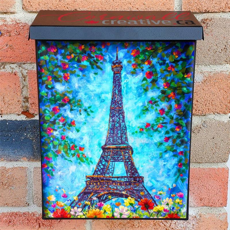 Reform your Mailbox and your neighborhood with this brilliant Summertime Eiffel Tower Colonial magnetic or self adhesive vinyl Mailbox Cover. Our magnetic covers feature a complete magnetic surface throughout the entire design, unlike lower-quality options that only incorporate two magnet strips combined with a piece of canvas. This ensures better functionality and a more reliable, stronger hold against the wind, also these covers have an additional UV protection, so your covers will not fade for many years. We offer self-adhesive and magnetic covers with both standard opaque vinyl or reflective vinyl options. The reflective mailbox covers function just like license plates and road signs, ensuring excellent visibility during nighttime. No matter the size of your mailbox, we make covers for all box sizes to suit your needs perfectly!
