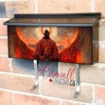 Applying your The Angel of Hell wall-mounted townhouse / ranch mailbox cover it is pretty easy to develop your mailbox to a special and unique item. These covers require a flat surface, so they work with townhouse / ranch mailboxes that do not have any embossed / debossed decoration or signs. Magnetic mailbox covers work with steel boxes only, for aluminum and plastic boxes we offer the self-adhesive vinyl covers. Also, you can create your custom townhouse / ranch mailbox cover using you own pictures, adding your name, street number, etc. Our magnetic covers feature a complete magnetic surface throughout the entire design, unlike lower-quality options that only incorporate two magnet strips combined with a piece of canvas. This ensures better functionality and a more reliable, stronger hold against the wind, also these covers have an additional UV protection, so your covers will not fade for many years. The reflective mailbox covers function just like license plates and road signs, ensuring excellent visibility during nighttime.