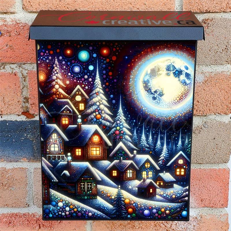 Prettify your Mailbox and your neighborhood with this brilliant The Coldest Winter Night Colonial magnetic or self adhesive vinyl Mailbox Cover. Our magnetic covers feature a complete magnetic surface throughout the entire design, unlike lower-quality options that only incorporate two magnet strips combined with a piece of canvas. This ensures better functionality and a more reliable, stronger hold against the wind, also these covers have an additional UV protection, so your covers will not fade for many years. We offer self-adhesive and magnetic covers with both standard opaque vinyl or reflective vinyl options. The reflective mailbox covers function just like license plates and road signs, ensuring excellent visibility during nighttime. No matter the size of your mailbox, we make covers for all box sizes to suit your needs perfectly!