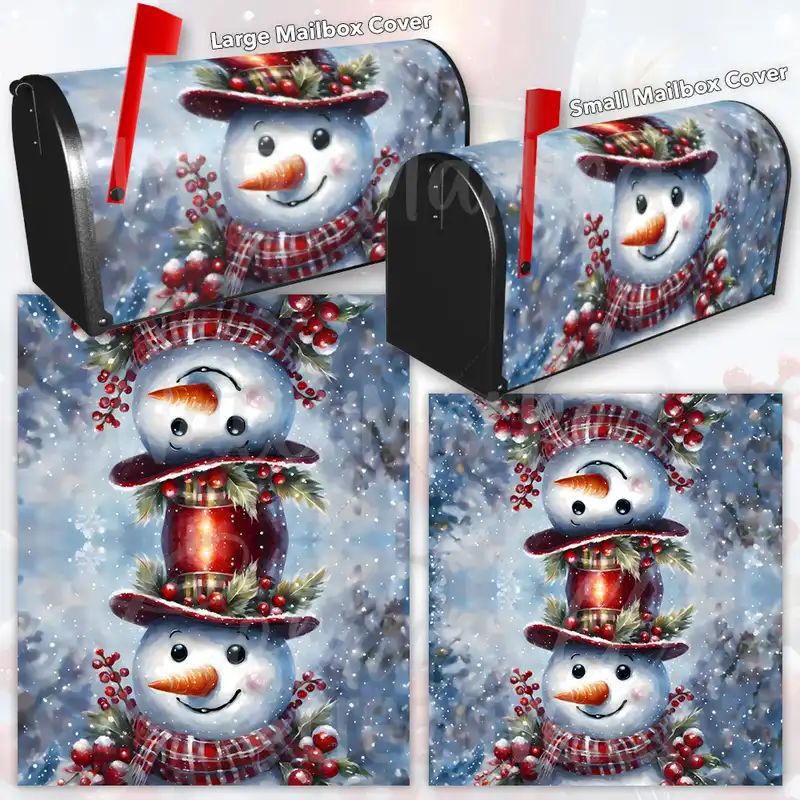 Prettify your Mailbox and your neighborhood with this brilliant The Cutest Snowman curbside / rural / farm magnetic or self adhesive vinyl Mailbox Cover. Our magnetic covers feature a complete magnetic surface throughout the entire design, unlike lower-quality options that only incorporate two magnet strips combined with a piece of canvas. This ensures better functionality and a more reliable, stronger hold against the wind, also these covers have an additional UV protection, so your covers will not fade for many years. We offer self-adhesive and magnetic covers with both standard opaque vinyl or reflective vinyl options. The reflective mailbox covers function just like license plates and road signs, ensuring excellent visibility during nighttime. No matter the size of your mailbox, we make covers for all small, large and jumbo boxes to suit your needs perfectly!