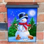 Gussy up your Mailbox and your neighborhood with this brilliant Theodore the Snowman with a Garland Colonial magnetic or self adhesive vinyl Mailbox Cover. Our magnetic covers feature a complete magnetic surface throughout the entire design, unlike lower-quality options that only incorporate two magnet strips combined with a piece of canvas. This ensures better functionality and a more reliable, stronger hold against the wind, also these covers have an additional UV protection, so your covers will not fade for many years. We offer self-adhesive and magnetic covers with both standard opaque vinyl or reflective vinyl options. The reflective mailbox covers function just like license plates and road signs, ensuring excellent visibility during nighttime. No matter the size of your mailbox, we make covers for all box sizes to suit your needs perfectly!