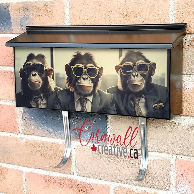 Three Monkeys In Sunglasses Are Dressed Up 3 Wall-mounted Townhouse Mailbox Cover