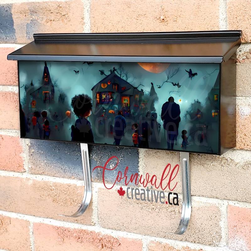 Applying your Trick 0r Treating Kids wall-mounted townhouse / ranch mailbox cover it is pretty easy to transform your mailbox to a special and unique item. These covers require a flat surface, so they work with townhouse / ranch mailboxes that do not have any embossed / debossed decoration or signs. Magnetic mailbox covers work with steel boxes only, for aluminum and plastic boxes we offer the self-adhesive vinyl covers. Also, you can create your custom townhouse / ranch mailbox cover using you own pictures, adding your name, street number, etc. Our magnetic covers feature a complete magnetic surface throughout the entire design, unlike lower-quality options that only incorporate two magnet strips combined with a piece of canvas. This ensures better functionality and a more reliable, stronger hold against the wind, also these covers have an additional UV protection, so your covers will not fade for many years. The reflective mailbox covers function just like license plates and road signs, ensuring excellent visibility during nighttime.