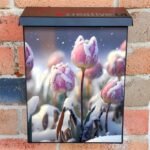 Adorn your Mailbox and your neighborhood with this brilliant Tulips in the Snow #2 Colonial magnetic or self adhesive vinyl Mailbox Cover. Our magnetic covers feature a complete magnetic surface throughout the entire design, unlike lower-quality options that only incorporate two magnet strips combined with a piece of canvas. This ensures better functionality and a more reliable, stronger hold against the wind, also these covers have an additional UV protection, so your covers will not fade for many years. We offer self-adhesive and magnetic covers with both standard opaque vinyl or reflective vinyl options. The reflective mailbox covers function just like license plates and road signs, ensuring excellent visibility during nighttime. No matter the size of your mailbox, we make covers for all box sizes to suit your needs perfectly!