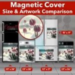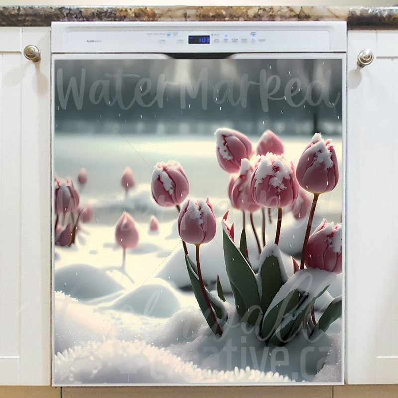 Transform your kitchen effortlessly with this stunning Tulips in the Snow Magnetic Dishwasher Door Cover! Keep in mind that while this cover works with most dishwashers, some stainless steel and plastic doors might not hold magnets. There are two types of stainless steel: one that attracts magnets well and another that does not, and plastic doors will definitely not work with magnets. So, it is a good idea to test the surface with a magnet before making a purchase. If your dishwasher door is not compatible, consider opting for the Removable Dishwasher Door Sticker instead. Your decorated kitchen will be ready for the season in no time! Keep in mind that this magnetic cover is versatile and can be used on a variety of appliances, including fridges, freezers, washers, dryers, and more!