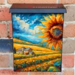 Adorn your Mailbox and your neighborhood with this brilliant Tuscan Evening and Sunflowers Colonial magnetic or self adhesive vinyl Mailbox Cover. Our magnetic covers feature a complete magnetic surface throughout the entire design, unlike lower-quality options that only incorporate two magnet strips combined with a piece of canvas. This ensures better functionality and a more reliable, stronger hold against the wind, also these covers have an additional UV protection, so your covers will not fade for many years. We offer self-adhesive and magnetic covers with both standard opaque vinyl or reflective vinyl options. The reflective mailbox covers function just like license plates and road signs, ensuring excellent visibility during nighttime. No matter the size of your mailbox, we make covers for all box sizes to suit your needs perfectly!