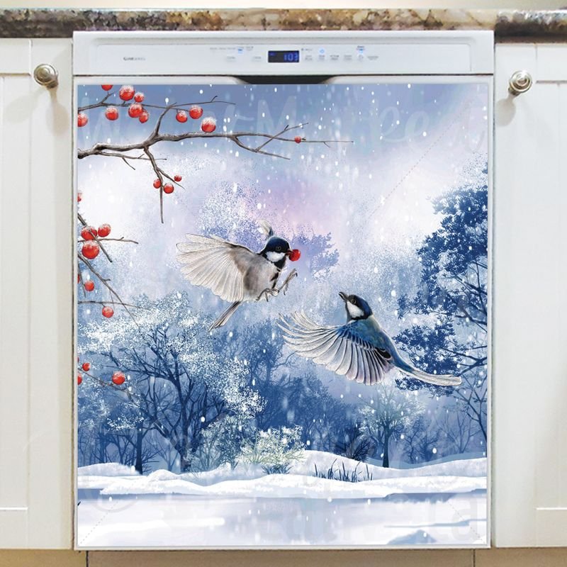 Dress-up your kitchen effortlessly with this stunning Two Little Winter Birds Magnetic Dishwasher Door Cover! Keep in mind that while this cover works with most dishwashers, some stainless steel and plastic doors might not hold magnets. There are two types of stainless steel: one that attracts magnets well and another that does not, and plastic doors will definitely not work with magnets. So, it is a good idea to test the surface with a magnet before making a purchase. If your dishwasher door is not compatible, consider opting for the Removable Dishwasher Door Sticker instead. Your improved kitchen will be ready for the season in no time! Keep in mind that this magnetic cover is versatile and can be used on a variety of appliances, including fridges, freezers, washers, dryers, and more!