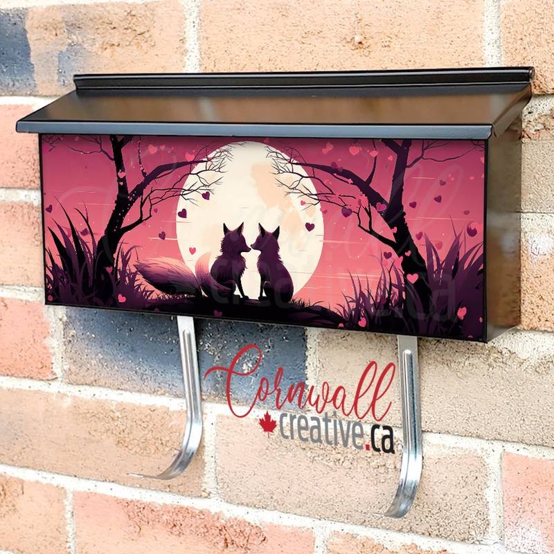Applying your Two Lovely Romantic Cute Foxes With Full Moon wall-mounted townhouse / ranch mailbox cover it is pretty easy to prettify your mailbox to a special and unique item. These covers require a flat surface, so they work with townhouse / ranch mailboxes that do not have any embossed / debossed decoration or signs. Magnetic mailbox covers work with steel boxes only, for aluminum and plastic boxes we offer the self-adhesive vinyl covers. Also, you can create your custom townhouse / ranch mailbox cover using you own pictures, adding your name, street number, etc. Our magnetic covers feature a complete magnetic surface throughout the entire design, unlike lower-quality options that only incorporate two magnet strips combined with a piece of canvas. This ensures better functionality and a more reliable, stronger hold against the wind, also these covers have an additional UV protection, so your covers will not fade for many years. The reflective mailbox covers function just like license plates and road signs, ensuring excellent visibility during nighttime.