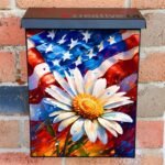 Revamp your Mailbox and your neighborhood with this brilliant USA Flag with a Daisy Colonial magnetic or self adhesive vinyl Mailbox Cover. Our magnetic covers feature a complete magnetic surface throughout the entire design, unlike lower-quality options that only incorporate two magnet strips combined with a piece of canvas. This ensures better functionality and a more reliable, stronger hold against the wind, also these covers have an additional UV protection, so your covers will not fade for many years. We offer self-adhesive and magnetic covers with both standard opaque vinyl or reflective vinyl options. The reflective mailbox covers function just like license plates and road signs, ensuring excellent visibility during nighttime. No matter the size of your mailbox, we make covers for all box sizes to suit your needs perfectly!