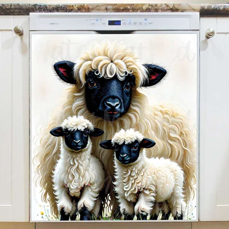 Lift your kitchen effortlessly with this stunning Valais Blacknose Sheep Family Magnetic Dishwasher Door Cover! Keep in mind that while this cover works with most dishwashers, some stainless steel and plastic doors might not hold magnets. There are two types of stainless steel: one that attracts magnets well and another that does not, and plastic doors will definitely not work with magnets. So, it is a good idea to test the surface with a magnet before making a purchase. If your dishwasher door is not compatible, consider opting for the Removable Dishwasher Door Sticker instead. Your improved kitchen will be ready for the season in no time! Keep in mind that this magnetic cover is versatile and can be used on a variety of appliances, including fridges, freezers, washers, dryers, and more!
