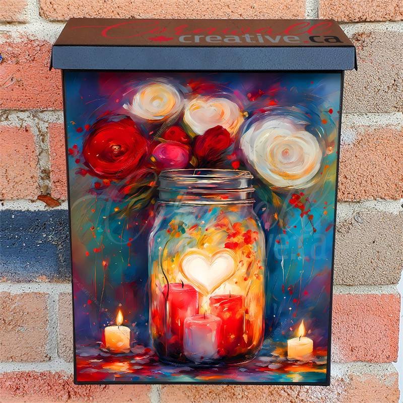 Embellish your Mailbox and your neighborhood with this brilliant Valentine’s Candles and a Roses Colonial magnetic or self adhesive vinyl Mailbox Cover. Our magnetic covers feature a complete magnetic surface throughout the entire design, unlike lower-quality options that only incorporate two magnet strips combined with a piece of canvas. This ensures better functionality and a more reliable, stronger hold against the wind, also these covers have an additional UV protection, so your covers will not fade for many years. We offer self-adhesive and magnetic covers with both standard opaque vinyl or reflective vinyl options. The reflective mailbox covers function just like license plates and road signs, ensuring excellent visibility during nighttime. No matter the size of your mailbox, we make covers for all box sizes to suit your needs perfectly!