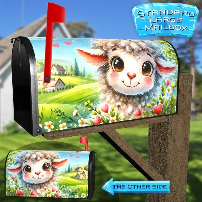 Develop your Mailbox and your neighborhood with this brilliant Valentine’s Day Cute Sheep curbside / rural / farm magnetic or self adhesive vinyl Mailbox Cover. Our magnetic covers feature a complete magnetic surface throughout the entire design, unlike lower-quality options that only incorporate two magnet strips combined with a piece of canvas. This ensures better functionality and a more reliable, stronger hold against the wind, also these covers have an additional UV protection, so your covers will not fade for many years. We offer self-adhesive and magnetic covers with both standard opaque vinyl or reflective vinyl options. The reflective mailbox covers function just like license plates and road signs, ensuring excellent visibility during nighttime. No matter the size of your mailbox, we make covers for all small, large and jumbo boxes to suit your needs perfectly!