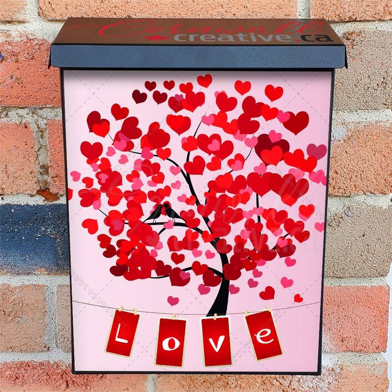Develop your Mailbox and your neighborhood with this brilliant Valentine’s Day Love Tree Colonial magnetic or self adhesive vinyl Mailbox Cover. Our magnetic covers feature a complete magnetic surface throughout the entire design, unlike lower-quality options that only incorporate two magnet strips combined with a piece of canvas. This ensures better functionality and a more reliable, stronger hold against the wind, also these covers have an additional UV protection, so your covers will not fade for many years. We offer self-adhesive and magnetic covers with both standard opaque vinyl or reflective vinyl options. The reflective mailbox covers function just like license plates and road signs, ensuring excellent visibility during nighttime. No matter the size of your mailbox, we make covers for all box sizes to suit your needs perfectly!