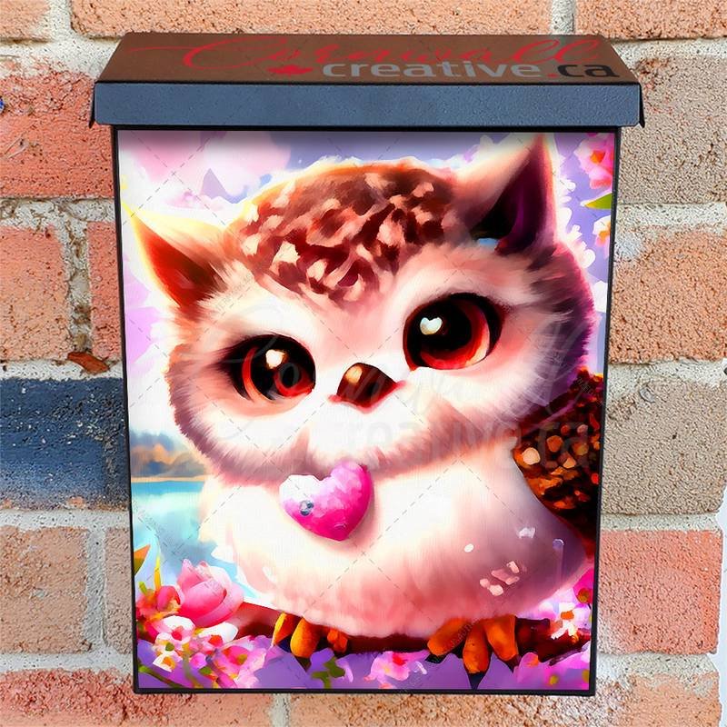 Revamp your Mailbox and your neighborhood with this brilliant Valentine’s Day Owl with Heart Colonial magnetic or self adhesive vinyl Mailbox Cover. Our magnetic covers feature a complete magnetic surface throughout the entire design, unlike lower-quality options that only incorporate two magnet strips combined with a piece of canvas. This ensures better functionality and a more reliable, stronger hold against the wind, also these covers have an additional UV protection, so your covers will not fade for many years. We offer self-adhesive and magnetic covers with both standard opaque vinyl or reflective vinyl options. The reflective mailbox covers function just like license plates and road signs, ensuring excellent visibility during nighttime. No matter the size of your mailbox, we make covers for all box sizes to suit your needs perfectly!