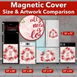 Beautify your kitchen effortlessly with this stunning Valentine’s Day Rose Wreath Magnetic Dishwasher Door Cover! Keep in mind that while this cover works with most dishwashers, some stainless steel and plastic doors might not hold magnets. There are two types of stainless steel: one that attracts magnets well and another that does not, and plastic doors will definitely not work with magnets. So, it is a good idea to test the surface with a magnet before making a purchase. If your dishwasher door is not compatible, consider opting for the Removable Dishwasher Door Sticker instead. Your decorated kitchen will be ready for the season in no time! Keep in mind that this magnetic cover is versatile and can be used on a variety of appliances, including fridges, freezers, washers, dryers, and more!