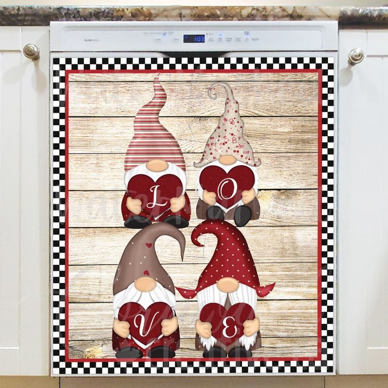Valentine’s Gnomes with Hearts Magnetic Dishwasher Door Cover