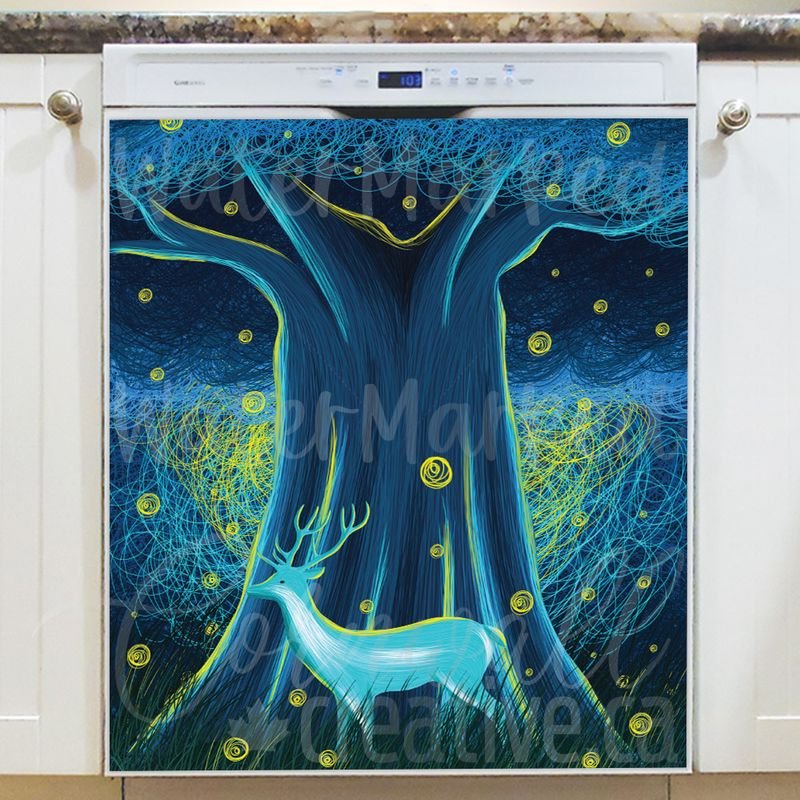 Glamorize your kitchen effortlessly with this stunning Van Gogh Style Magical Forest and Deer Magnetic Dishwasher Door Cover! Keep in mind that while this cover works with most dishwashers, some stainless steel and plastic doors might not hold magnets. There are two types of stainless steel: one that attracts magnets well and another that does not, and plastic doors will definitely not work with magnets. So, it is a good idea to test the surface with a magnet before making a purchase. If your dishwasher door is not compatible, consider opting for the Removable Dishwasher Door Sticker instead. Your enhanced kitchen will be ready for the season in no time! Keep in mind that this magnetic cover is versatile and can be used on a variety of appliances, including fridges, freezers, washers, dryers, and more!