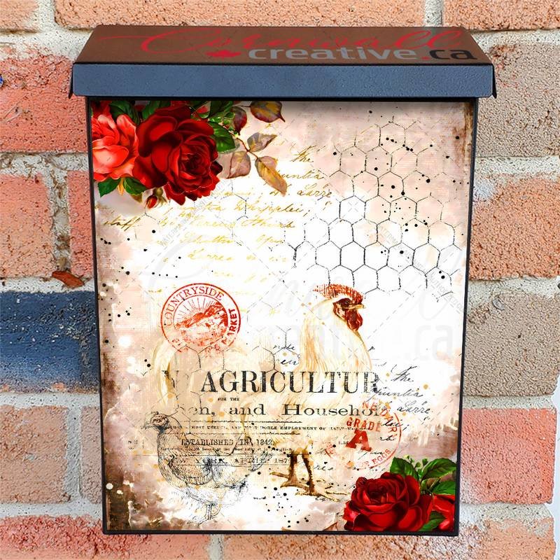 Develop your Mailbox and your neighborhood with this brilliant Vintage Chicken and Rooster Colonial magnetic or self adhesive vinyl Mailbox Cover. Our magnetic covers feature a complete magnetic surface throughout the entire design, unlike lower-quality options that only incorporate two magnet strips combined with a piece of canvas. This ensures better functionality and a more reliable, stronger hold against the wind, also these covers have an additional UV protection, so your covers will not fade for many years. We offer self-adhesive and magnetic covers with both standard opaque vinyl or reflective vinyl options. The reflective mailbox covers function just like license plates and road signs, ensuring excellent visibility during nighttime. No matter the size of your mailbox, we make covers for all box sizes to suit your needs perfectly!