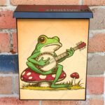 Dress-up your Mailbox and your neighborhood with this brilliant Vintage Frog Playing Banjo Colonial magnetic or self adhesive vinyl Mailbox Cover. Our magnetic covers feature a complete magnetic surface throughout the entire design, unlike lower-quality options that only incorporate two magnet strips combined with a piece of canvas. This ensures better functionality and a more reliable, stronger hold against the wind, also these covers have an additional UV protection, so your covers will not fade for many years. We offer self-adhesive and magnetic covers with both standard opaque vinyl or reflective vinyl options. The reflective mailbox covers function just like license plates and road signs, ensuring excellent visibility during nighttime. No matter the size of your mailbox, we make covers for all box sizes to suit your needs perfectly!