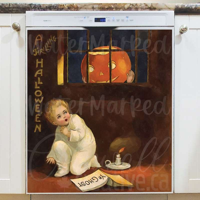 Decorate your kitchen effortlessly with this stunning Vintage Halloween Scared Kid Magnetic Dishwasher Door Cover! Keep in mind that while this cover works with most dishwashers, some stainless steel and plastic doors might not hold magnets. There are two types of stainless steel: one that attracts magnets well and another that does not, and plastic doors will definitely not work with magnets. So, it is a good idea to test the surface with a magnet before making a purchase. If your dishwasher door is not compatible, consider opting for the Removable Dishwasher Door Sticker instead. Your adorned kitchen will be ready for the season in no time! Keep in mind that this magnetic cover is versatile and can be used on a variety of appliances, including fridges, freezers, washers, dryers, and more!