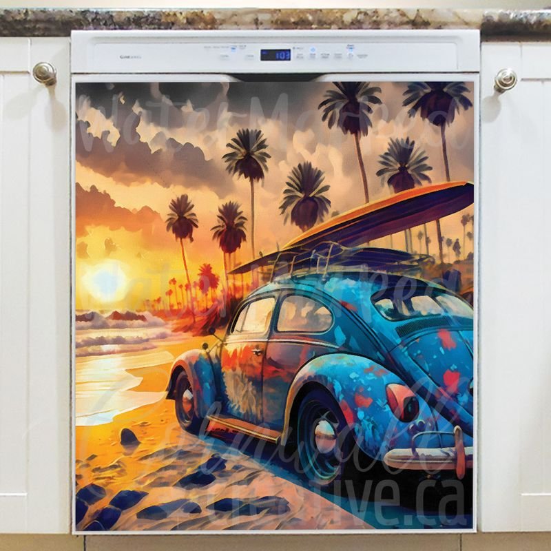 Volkswagen Beetle on the Beach Magnetic Dishwasher Door Cover