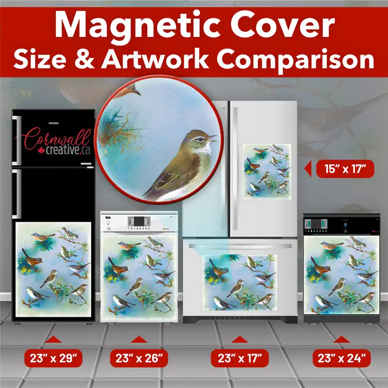 Lift your kitchen effortlessly with this stunning Warbler and Wrens by Archibald Thorburn Magnetic Dishwasher Door Cover! Keep in mind that while this cover works with most dishwashers, some stainless steel and plastic doors might not hold magnets. There are two types of stainless steel: one that attracts magnets well and another that does not, and plastic doors will definitely not work with magnets. So, it is a good idea to test the surface with a magnet before making a purchase. If your dishwasher door is not compatible, consider opting for the Removable Dishwasher Door Sticker instead. Your transformed kitchen will be ready for the season in no time! Keep in mind that this magnetic cover is versatile and can be used on a variety of appliances, including fridges, freezers, washers, dryers, and more!