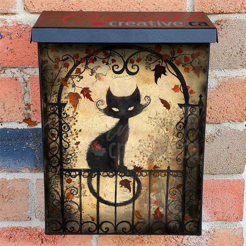 Decorate your Mailbox and your neighborhood with this brilliant Whimsical Cat on the Fence Colonial magnetic or self adhesive vinyl Mailbox Cover. Our magnetic covers feature a complete magnetic surface throughout the entire design, unlike lower-quality options that only incorporate two magnet strips combined with a piece of canvas. This ensures better functionality and a more reliable, stronger hold against the wind, also these covers have an additional UV protection, so your covers will not fade for many years. We offer self-adhesive and magnetic covers with both standard opaque vinyl or reflective vinyl options. The reflective mailbox covers function just like license plates and road signs, ensuring excellent visibility during nighttime. No matter the size of your mailbox, we make covers for all box sizes to suit your needs perfectly!
