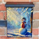 Adorn your Mailbox and your neighborhood with this brilliant Winter Forest Snowman Colonial magnetic or self adhesive vinyl Mailbox Cover. Our magnetic covers feature a complete magnetic surface throughout the entire design, unlike lower-quality options that only incorporate two magnet strips combined with a piece of canvas. This ensures better functionality and a more reliable, stronger hold against the wind, also these covers have an additional UV protection, so your covers will not fade for many years. We offer self-adhesive and magnetic covers with both standard opaque vinyl or reflective vinyl options. The reflective mailbox covers function just like license plates and road signs, ensuring excellent visibility during nighttime. No matter the size of your mailbox, we make covers for all box sizes to suit your needs perfectly!