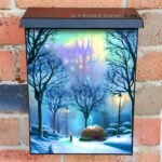 Gussy up your Mailbox and your neighborhood with this brilliant Winter Walk in the Park Colonial magnetic or self adhesive vinyl Mailbox Cover. Our magnetic covers feature a complete magnetic surface throughout the entire design, unlike lower-quality options that only incorporate two magnet strips combined with a piece of canvas. This ensures better functionality and a more reliable, stronger hold against the wind, also these covers have an additional UV protection, so your covers will not fade for many years. We offer self-adhesive and magnetic covers with both standard opaque vinyl or reflective vinyl options. The reflective mailbox covers function just like license plates and road signs, ensuring excellent visibility during nighttime. No matter the size of your mailbox, we make covers for all box sizes to suit your needs perfectly!