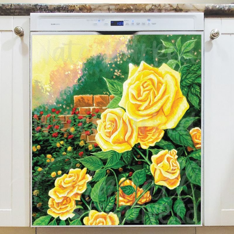 Embellish your kitchen effortlessly with this stunning Yellow Rose Garden Magnetic Dishwasher Door Cover! Keep in mind that while this cover works with most dishwashers, some stainless steel and plastic doors might not hold magnets. There are two types of stainless steel: one that attracts magnets well and another that does not, and plastic doors will definitely not work with magnets. So, it is a good idea to test the surface with a magnet before making a purchase. If your dishwasher door is not compatible, consider opting for the Removable Dishwasher Door Sticker instead. Your glamorized kitchen will be ready for the season in no time! Keep in mind that this magnetic cover is versatile and can be used on a variety of appliances, including fridges, freezers, washers, dryers, and more!