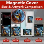 Reform your kitchen effortlessly with this stunning Young Lynx at Night Magnetic Dishwasher Door Cover! Keep in mind that while this cover works with most dishwashers, some stainless steel and plastic doors might not hold magnets. There are two types of stainless steel: one that attracts magnets well and another that does not, and plastic doors will definitely not work with magnets. So, it is a good idea to test the surface with a magnet before making a purchase. If your dishwasher door is not compatible, consider opting for the Removable Dishwasher Door Sticker instead. Your revamped kitchen will be ready for the season in no time! Keep in mind that this magnetic cover is versatile and can be used on a variety of appliances, including fridges, freezers, washers, dryers, and more!