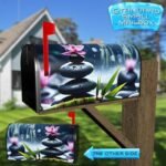 Gild your Mailbox and your neighborhood with this brilliant Zen Stones and Lotus Flower curbside / rural / farm magnetic or self adhesive vinyl Mailbox Cover. Our magnetic covers feature a complete magnetic surface throughout the entire design, unlike lower-quality options that only incorporate two magnet strips combined with a piece of canvas. This ensures better functionality and a more reliable, stronger hold against the wind, also these covers have an additional UV protection, so your covers will not fade for many years. We offer self-adhesive and magnetic covers with both standard opaque vinyl or reflective vinyl options. The reflective mailbox covers function just like license plates and road signs, ensuring excellent visibility during nighttime. No matter the size of your mailbox, we make covers for all small, large and jumbo boxes to suit your needs perfectly!